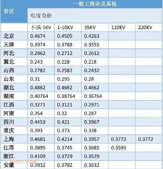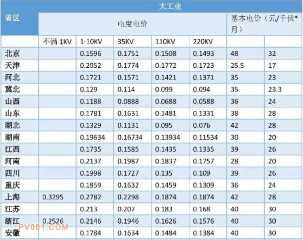 不同用电户的销售电价差异很大,工商业电价、大工业电价、居民电价均为电网的销售电价,全国的平均水平如下表。