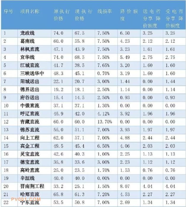 在今年4月份国家出台政策降低跨省跨区专项工程输电价格,跨省跨区价格平均下降3.55厘/度,降幅约6.9%。