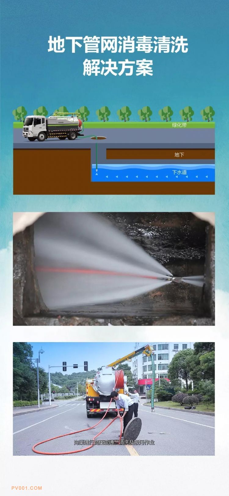 城市地下管网也是细菌病毒滋养的温床,盈峰中联环境下水道疏通养护专业装备,清洗到位,通管网、抑病毒。