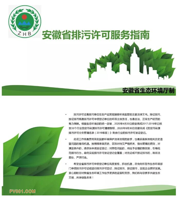 日前,安徽发布《安徽省排污许可服务指南》。主要针对排污单位申领排污许可证的相关事项。