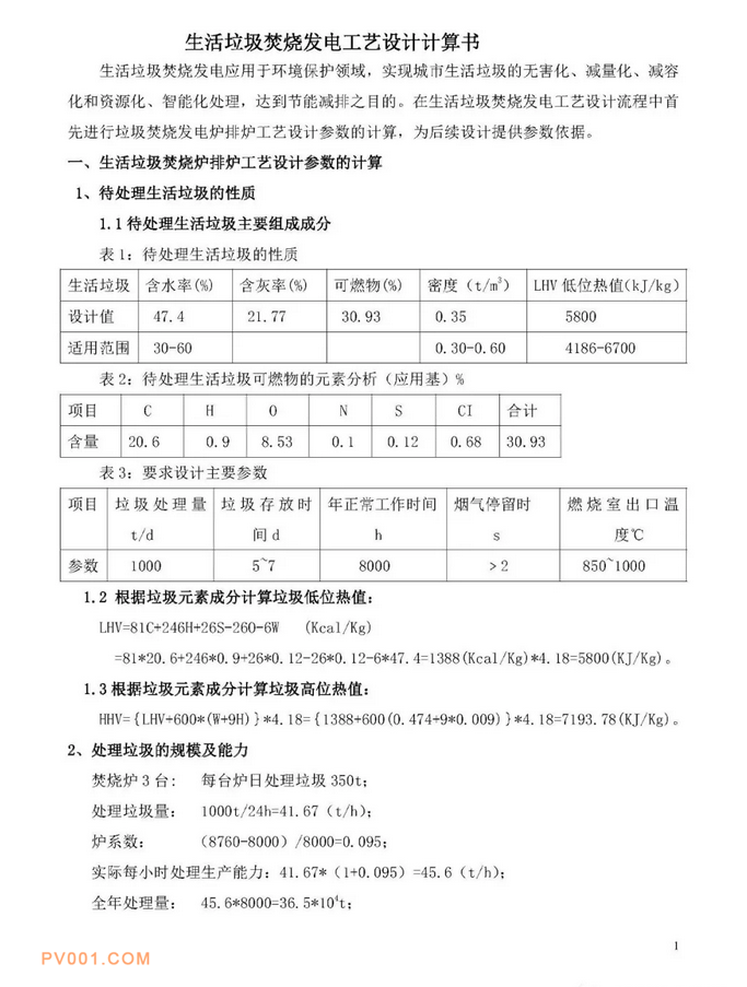 原标题:生活废弃物焚烧发电设计计算书