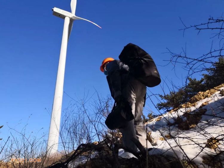 由于山坡上面有树林干扰了视线,所以他们只能一边行进,一边望向山顶的风机,来不断的校准自己的行进方向。这样的环境下负重爬山,“特别行动小组”每移动100米都是非常困难的,为了尽量减少业主的电量损失,小组成员一边相互鼓励,一边负重前行,原本寂静的小树林里迅速传来了三个人的笑声。就这样,经过1个多小时的跋涉,三个人终于到达机位。