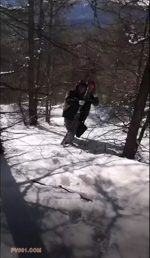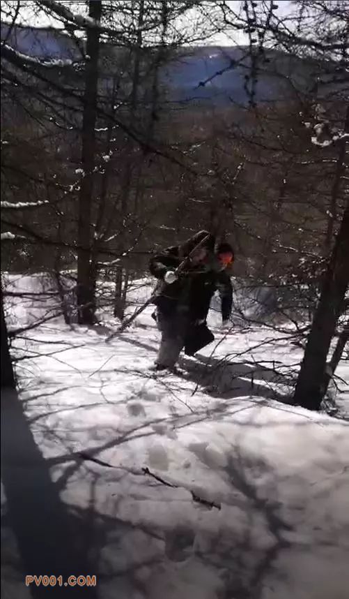 升压站距离140号机组大约20多公里,由于近期的持续降雪,车辆只能勉强开到风机所在机位的山脚下,为了缩短路程,尽快到达机位,组长石海芳决定直接穿山步行。就这样,石海芳、张宇星背着安全带和缆风绳,郭志成背着工具包以及备件,三个人相互搀扶着爬上了这个坡度约40多度,长度约200多米的山坡。