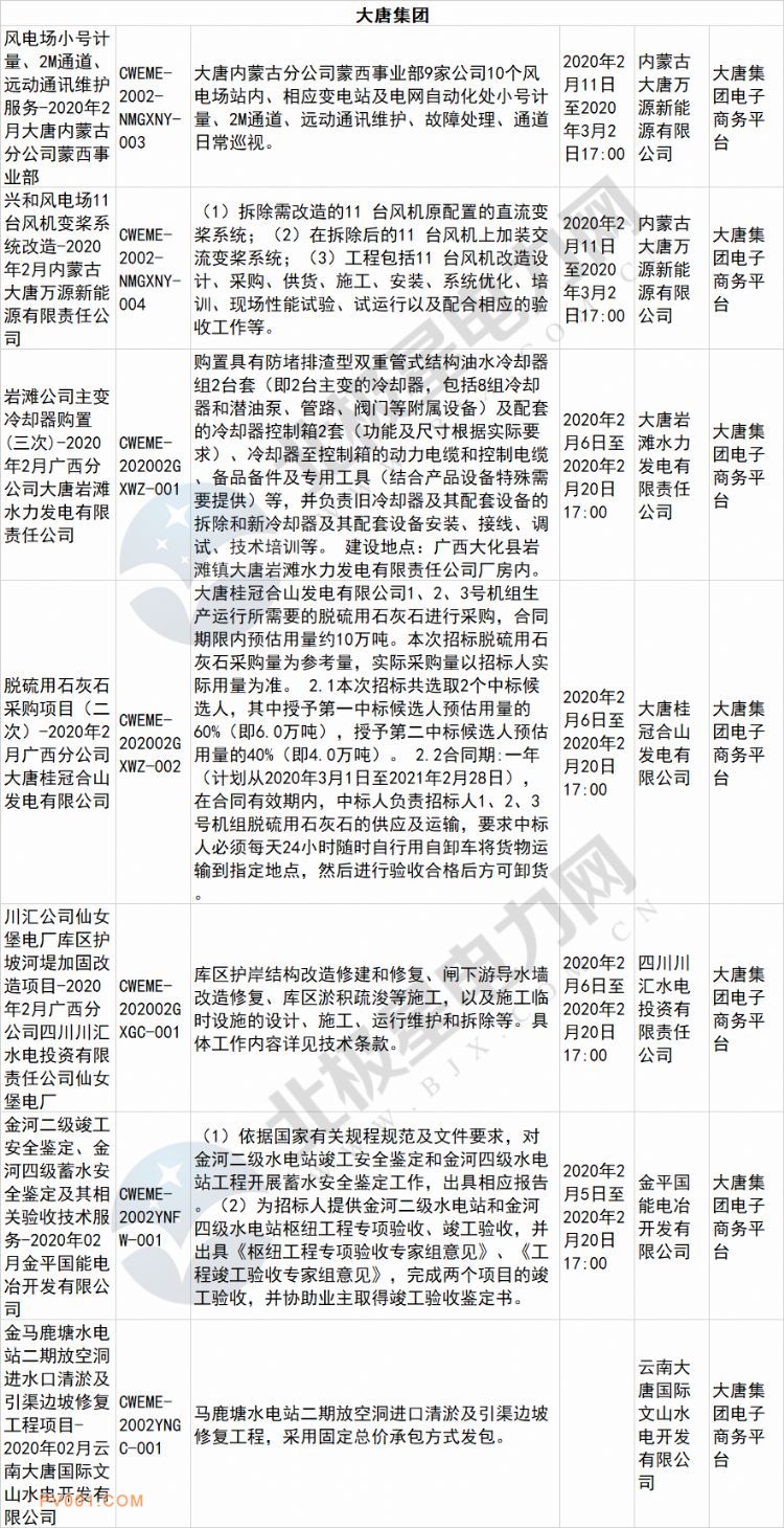 本周,近日还梳理了各大发电集团电子商务平台发布的招标采购计划(不完全统计),这些计划将带动全产业链上下游复工复产: