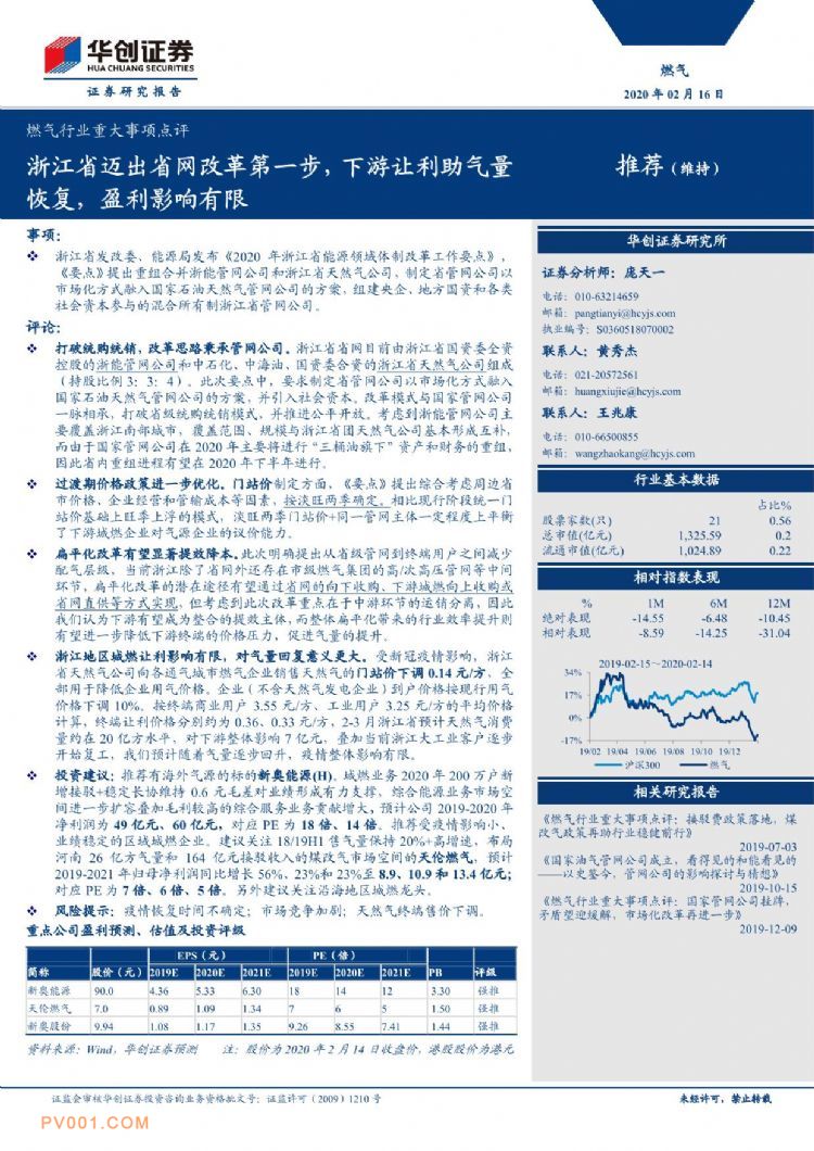 浙江省发改委、能源局发布《2020年浙江省能源领域体制改革工作要点》, 《要点》提出重组合并浙能管网公司和浙江省天然气公司,制定省管网公司以市场化方式融入国家石油天然气管网公司的方案,组建央企、地方国资和各类社会资本参与的混合所有制浙江省管网公司。