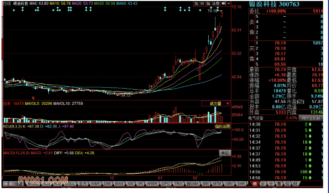 股价方面,锦浪科技于今日创出70.19元的11个月新高,距其历史新高74.77元仅有一步之遥。自2019年12月3日34.72元的低点,锦浪科技股价在2个多月时间内已成功翻倍。自2月3日41.00元低点算起,锦浪科技11个交易日最高涨幅也达71.19%。