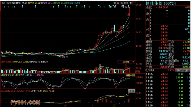 二级市场上看,锦浪科技(300763)、捷佳伟创(300724)、山煤国际、精功科技、露笑科技等7支光伏概念股强势涨停。