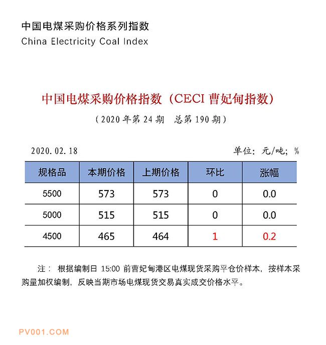中电联中国电煤采购价格指数(CECI曹妃甸指数)第190期