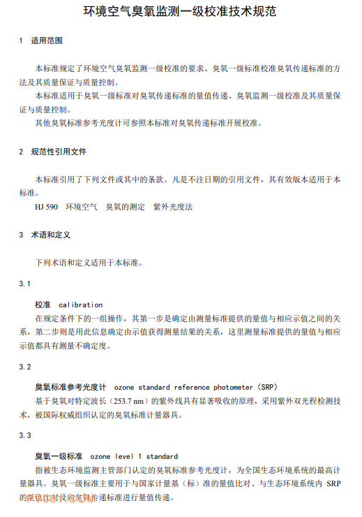 为贯彻《中华人民共和国环境保护法》《中华人民共和国大气污染防治法》,保护生态环境,保障人体健康,规范环境空气臭氧监测一级校准操作,制定本标准。本标准规定了环境空气臭氧监测一级校准的要求、臭氧一级标准校准臭氧传递标准的方法及其质量保证与质量控制。 本标准的附录 A~附录 D 为资料性附录。本标准为首次发布。