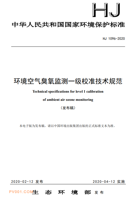 一、《环境空气臭氧监测一级校准技术规范》(HJ 1096-2020)