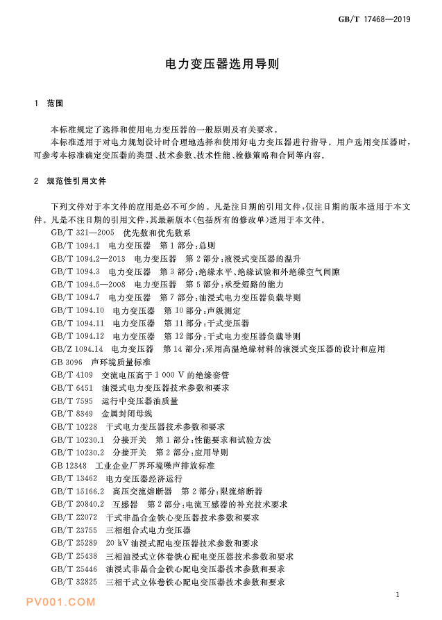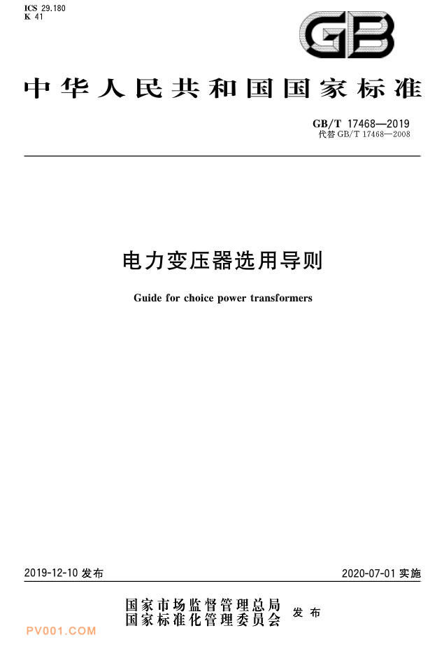 近日获悉,国家标准《电力变压器选用导则》标准号:GB/T 17468-2019已经发布,将于2020年7月起开始实施。