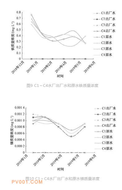 3.2 以C水库为水源的各水厂出厂水和原水数据比较