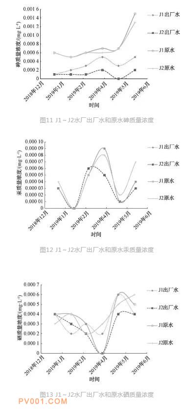 本次统计的13个水厂中:砷、铁出厂水质量浓度始终显著低于原水;锑出厂水质量浓度大部分情况下低于原水;汞、硒出厂水质量浓度高于原水的情况比较普遍。