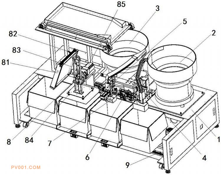 专利摘要:公开(公告)日:2020-06-19摘要:本实用新型涉及组装机领域,尤其是泵盖组装机。该组装机包括机台、振动盘一、振动盘二、工件一分料机构、工件二分料机构、工件抓取安装机构、出料机构和铺隔离纸机构,所述机台上固定有振动盘一、振动盘二、工件一分料机构、工件二分料机构、工件抓取安装机构、铺隔离纸机构,工件抓取安装机构位于工件一分料机构和工件二分料机构之间,工件二分料机构底部固定有出料机构。本实用新型通过工件一分料机构将工件一分料。通过工件二分料机构将工件二分料。通过工件抓取安装机构将工件一抓取出来安装到工件二上。通过出料机构将组合好的泵盖均匀倾倒到箱体内。通过铺隔离纸机构在箱体内铺设保护泵盖的隔离纸。本申请提高了泵盖组装的工作效率。