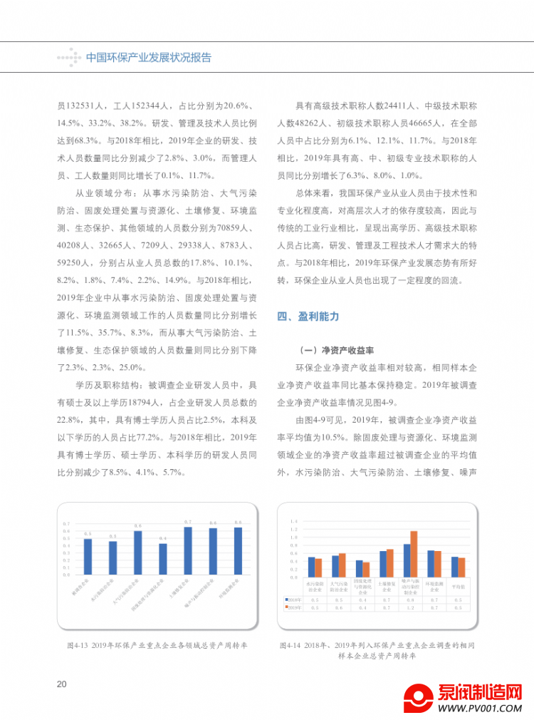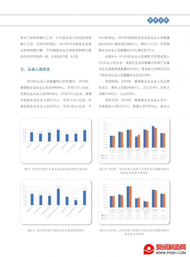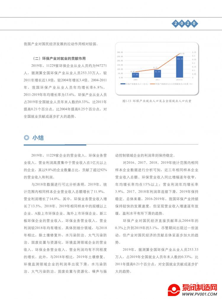 2004-2011年,我国环保产业从业人员年均增长率6.8%,2011-2019年年均增长率为13.6%。2019年环保产业从业人员占全国就业人员年末人数的0.33%,比2011年提高0.21个百分点,比2004年提高0.25个百分点,对全国就业的贡献呈逐步扩大的趋势。