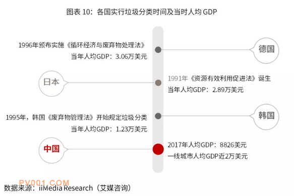 经济发展要求推行垃圾分类制度。从国外发达国家的垃圾分类经验来看,经济发展到一定程度即人均GDP达到1万美元时,国民经济相应的消费模式、环保意识会发生变化,适于推行垃圾分类。德国是最早实行循环经济立法的国家,其实行的是“连坐式”惩罚措施及双向回收系统。日本的垃圾分类责任明确,有完善的奖惩制度并严格实施。丹麦是通过税法和收费退费推行垃圾分类回收,而瑞典则是生产者责任制的首创国家。