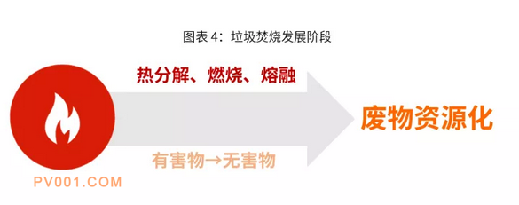 为了解决垃圾填埋带来的问题,垃圾焚烧开始普及。垃圾焚烧是通过适当的热分解、燃烧、熔融等反应,使垃圾经过高温下的氧化进行减容,成为残渣或者熔融固体物质的过程。回收垃圾焚烧产生的热量用于发电,可实现废物资源化。为了处理日益增长的生活垃圾,“十二五”指出,中国增加修建大城市的垃圾焚烧厂,将填埋的垃圾处理方式转变为以焚烧为主的垃圾处理方式。
