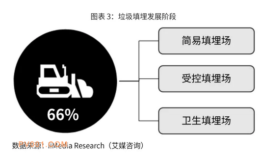 最初,垃圾填埋为解决城市生活垃圾的最主要方法。根据统计,中国城市生活垃圾无害化处理设施共有1013座,其中生活垃圾卫生填埋场有654个。2017年,中国53%的城市生活垃圾采用填埋处理。然而,随着城市垃圾量的增加,靠近城市的适用的填埋场地愈来愈少,开辟远距离填埋场地又大大提高了垃圾运输费用,因此这一方法正在逐步淘汰。