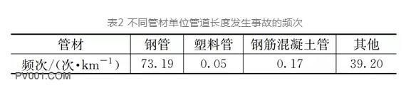 3 不同管材单位长度事故发生频次情况