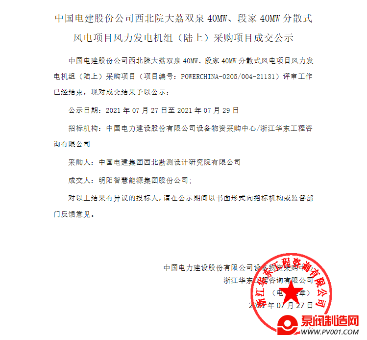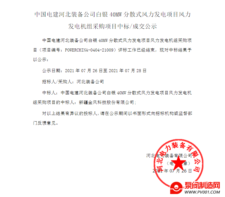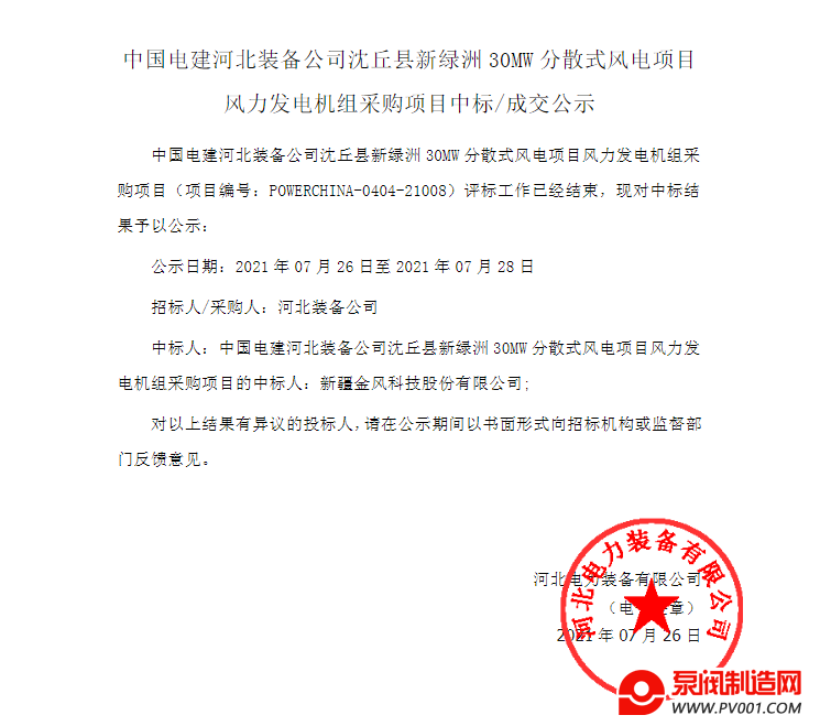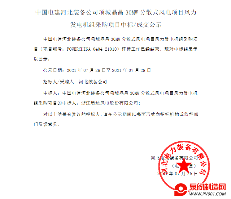 关键词: 中国电建风电机组中标分散式风电