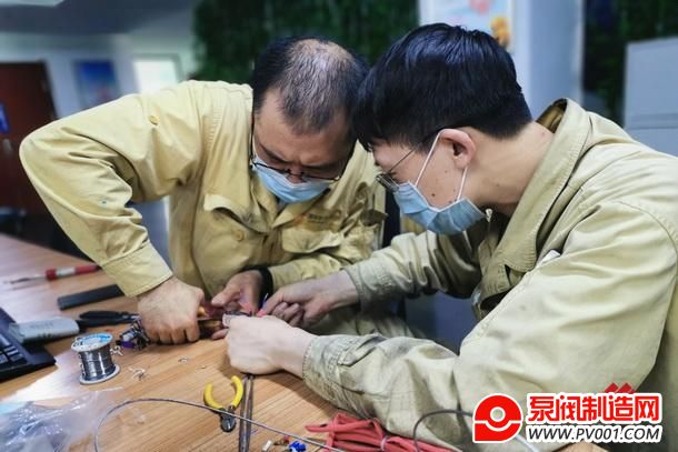 图为热控人员正在修理油箱液位计