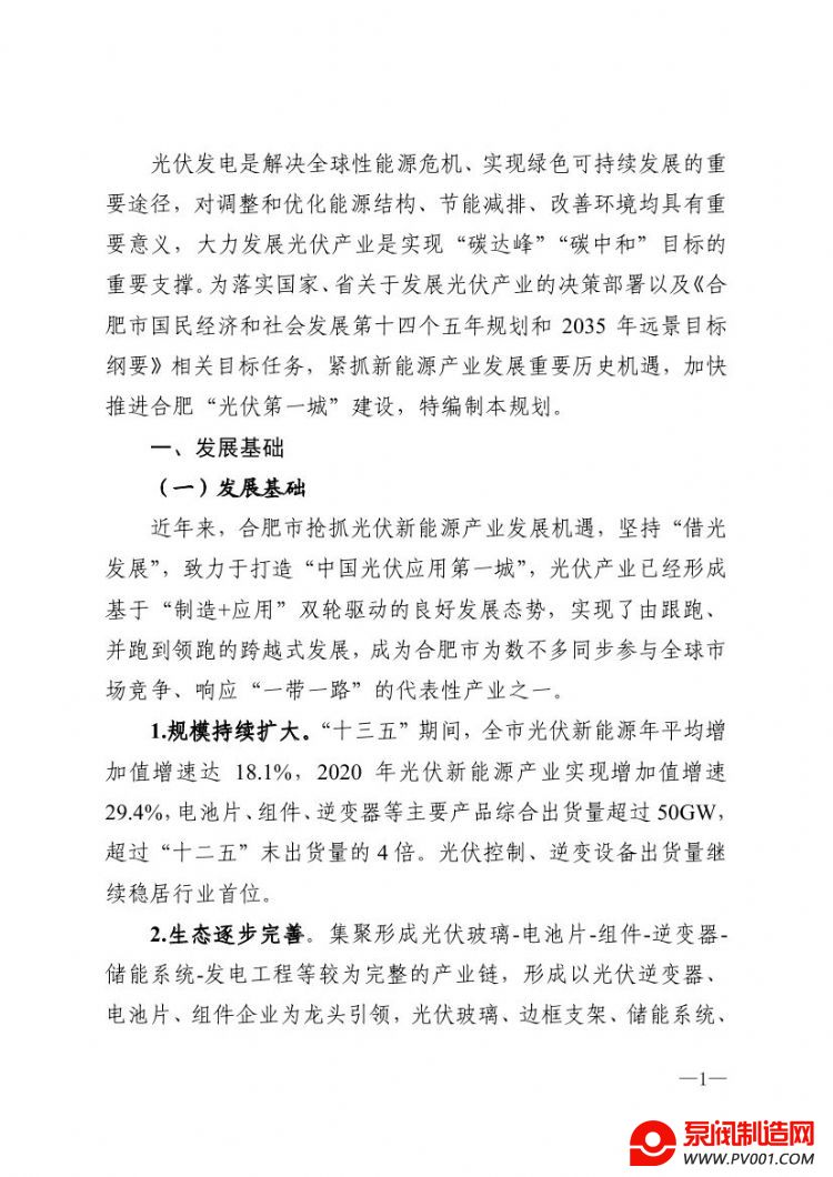 附件:1.合肥市“十四五”光伏产业发展规划(征求意见稿)