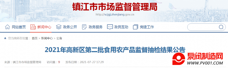 江苏镇江高新区2021年第二批食用农产品监督抽检结果公布