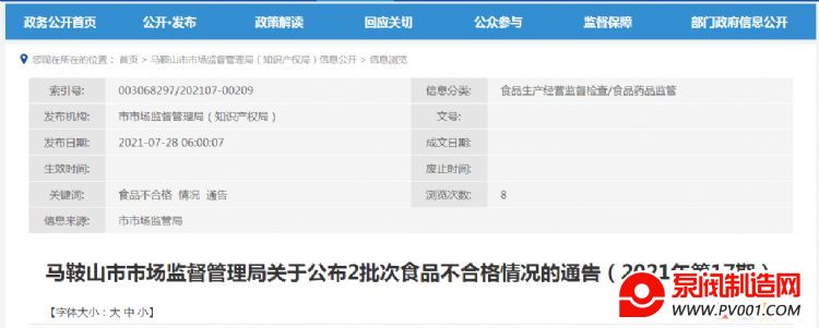 | 15 | / | / | 安徽省龙川徽府餐饮有限责任公司 | 安徽 | 煎炸过程用油 | / | 2021-06-29 | 食用油、油脂及其制品 |