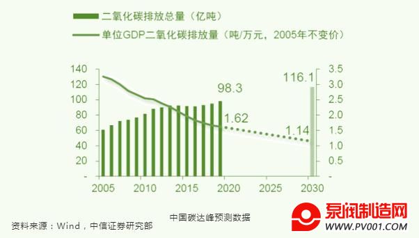 基于对我国GDP和单位GDP二氧化碳排放量的预测,2030年中国碳排放总量达到116.1亿吨,比2019年增长18.2%,这个数值应该是我国碳排放理论上的峰值数据。