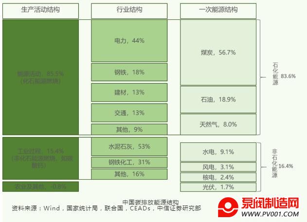 从细分结构上来看,中国碳排放呈现“能源活动占主导,化石能源为主体,行业相对集中”的特点。