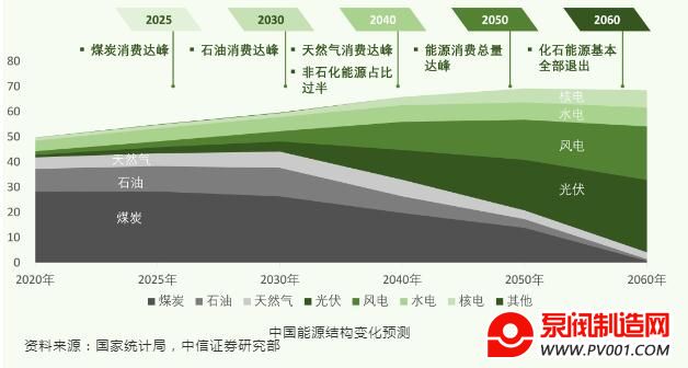 到2060年,煤炭和石油的能源消费几乎为零,仅保留部分化工需求,天然气或将作为能源应急响应需求少量存在。
