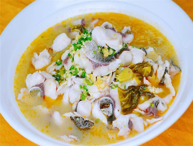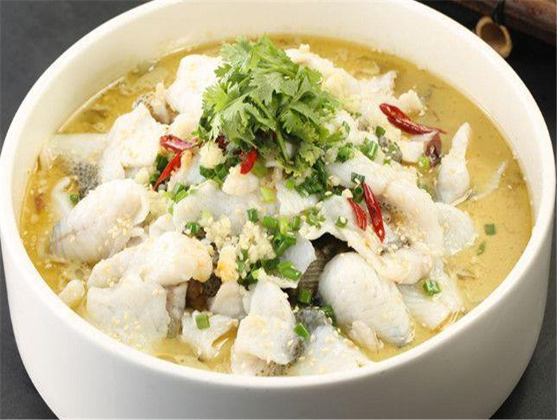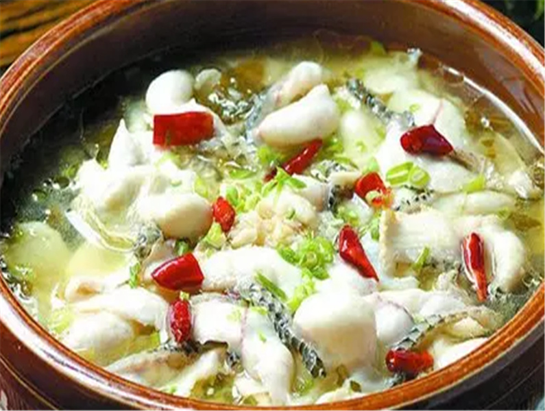 5-将鱼头鱼尾等制汤材料倒入锅中熬煮出香味,试下味,酌情添加糖盐(酸菜有盐味酌情加盐,将腌制鱼片倒入锅中,旺火氽烫至变色断生,起锅,连汤带鱼片倒入保温砂锅内3-炒锅烧热注油,将花椒干红椒段中小火炸香捞出,控油备用;下姜片蒜粒煸香,将酸菜倒入锅中一同煸炒至香味溢出,加入适量清水,加入醪糟汁煮开。