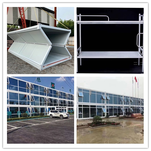 整个打包箱房采用组装设计。轻钢部件经过螺栓连接,易于拆卸,移动和存储。拆卸和组装的损失将很小。综合房屋的组件的标准都是通用的。可以由工厂预制,易于实现大规模生产,生产效率高。