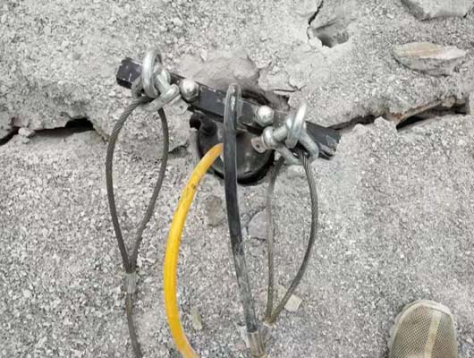 根据岩石岩质而定。岩石表面会出现纹路。液压油表显示液压达到120mpa时,液压站停止工作,处于保压状态,意味着工作以完成。只要换动手动阀黑色油管,活塞收缩,人工提出。依次重复,操作简单,方便易学。1向油站加入抗磨液压油,需加满。液压油站下方有游标,参照游标即可。2需接好三相线380v。电机需正传,顺时针方向。3将高压油管与劈裂棒相连接,油管颜色可分蓝色,黑色,蓝管高压,黑管低压。4打孔钻机,180孔,孔深浅1米2。对水泥膨胀剂,开采岩石需要等待的时间太过漫长,开采岩石速度太慢,人工打孔,工作量大但是方量提不上。还不可以重复利用。