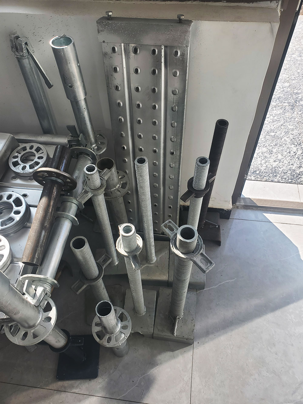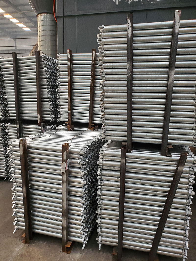 脚手架配件的部件和配件应暂停除锈和防锈。在高湿度5%以上的地区,脚手架配件厂家每年应进行一次防锈,一般每两年进行一次。紧固件应该上油。螺栓应该镀锌以防止生锈。如果没有镀锌条件,每次使用后都应该用热油清洗,并涂上机油以防生锈。露天堆放时,场地应平整,排水良好,下面有支撑垫,并用防水布遮盖。附件和配件应存放在室内。圆盘脚手架中使用的紧固件螺母垫板螺栓和其他小附件很容易丢失。多余部分支撑时应及时回收和存放,收回时应及时检查,不得乱放。