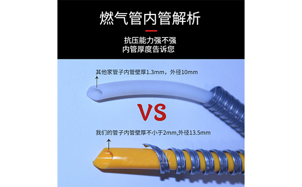 燃气不锈钢波纹管虽然价格贵一点但是使用寿命长,橡胶软管的使用寿命是18个月,即一年半,而不锈钢波纹软管的使用寿命是10年以上,综合计算成本更加经济实惠,还安全。