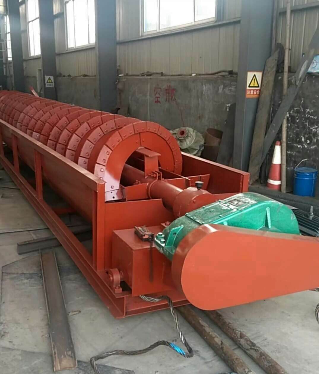蟑螂清洗机工作原理砂洗机工作时,马达通过三脚架减速器齿轮减速慢慢转动叶轮,砂石进入水桶,在叶轮的驱动下滚动,徐璐研磨,去除复盖砂石表面的杂质,同时破坏覆盖沙粒的水汽层,有助于脱水。同时加入水,形成强大的水流,及时带走杂质和比重小的异物,从流出出口水槽中排出,完成清洗作用。干净的砂石由叶子带走,砂石在旋转的叶轮上浇上材料凹槽,完成砂石的清洁作用。