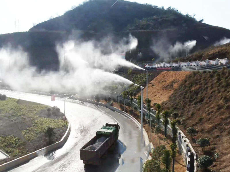 高压喷雾发尘设备,利用高压柱塞泵将水提升到一定压力后,通过耐高压管道输送到特质喷嘴,使水汽化蒸发,发挥喷雾发尘的作用,避免了整个运行系统的节能环境保护和有害气体排放,其效果基本上解决了粉尘问题,净化了环境经已使用高压喷雾降尘设备,现场拍摄的照片显示,该喷雾降尘设备达到的效果非常。
