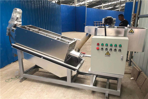 粪便脱水机采用螺杆挤压的工作方式将被加工对象中的水挤出过滤。螺杆和过滤器采用不锈钢制造,耐腐蚀,强度高。分离后渣的水分在30-40%之间。渣量水量可调。适用于不同配料的饲料(如草料浓缩饲料),运输方便,固体颗粒适合用于鱼类饲料有机肥料等原料。