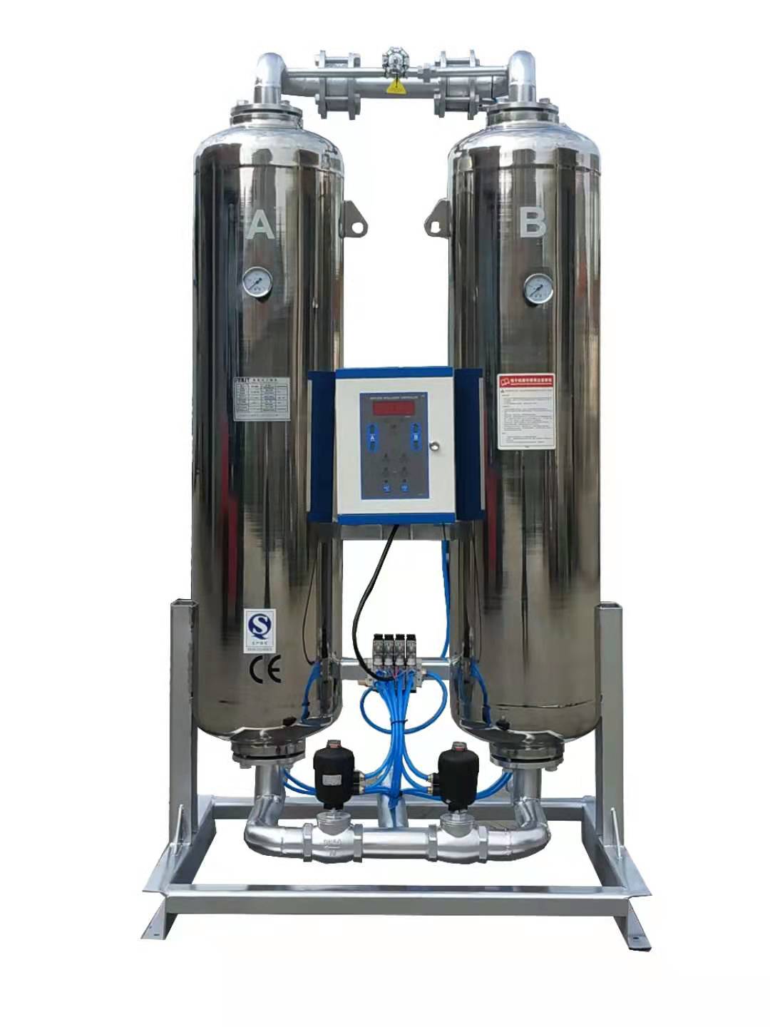 a抗压强度高,抗磨蚀,耐高温,不水解;高性能的活性氧化铝吸附剂f塔体制造符合压力容器国标规范。e的充填口和排出口,便于更换吸附剂;d缓慢而完全的充压程序和延时切换设计,消除下游气流脉动现象,并防止吸附剂移动和吸附剂磨蚀。
