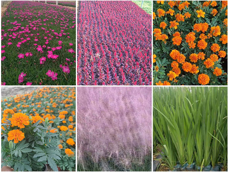 草花系列:金盏菊、万寿菊翠菊、皇帝菊、薰衣草、芝樱、鸡冠花(火炬/一支笔)、鼠尾草、长春花、四季美女樱、波斯菊、榨浆草(紫叶白花/绿叶粉花)、太阳花、羽衣甘蓝(二色)、美人蕉、孔雀草(三色)、四季海棠、矮牵牛(四色)、牵牛吊兰、三色堇、二月兰、一串红、彩叶草、百日草(步步高)、非洲凤仙、天竺葵等。