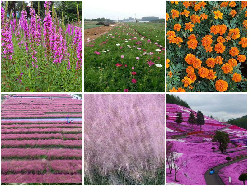 花种主要有如下品种紫罗兰,白晶菊,百日草,长春花,雏菊,翠菊,季海棠,福禄考,瓜叶菊,彩叶草,鸡冠花,波斯菊,金鱼草,藿香蓟,金鸡菊,金盏菊,孔雀草,康乃馨,美女樱,矮牵牛,报春花,色堇,石竹,矢车菊,松果菊,万寿菊,鼠尾草,凤仙花,向日葵,千日红,薰衣草,串红,羽扇豆,羽衣甘蓝,紫茉莉等。主要品。